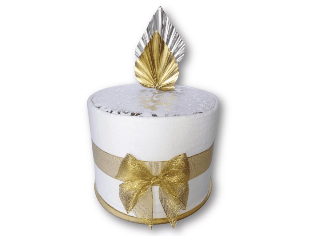 Tato zlato-stříbrná varianta plenkového dortu z lesklé kolekce SHINY je navržena tak, aby přidala trochu třpytu a elegance jakékoliv oslavě. Zlatá barva evokuje dokonalost, hojnost a přináší pocit zářícího štěstí, zatímco stříbrná barva dodává nádech sofistikovanosti, značí naději a podporuje představivost.