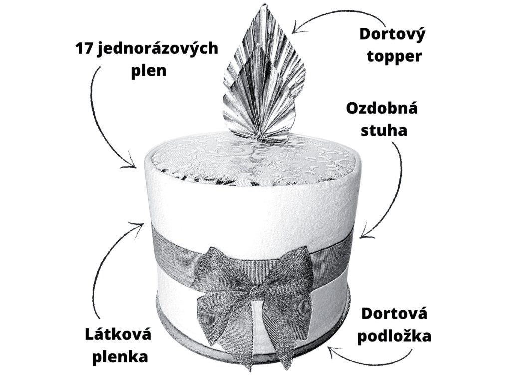 Oslňte neotřelým vzhledem - lesklý zlato-stříbrný kousek je určený pro milovníky minimalismu. Darujte plenkový dort pro kluka nebo pro holčičku ve zcela unikátním designu, který jinde neseženete. Precizní ruční práce je samozřejmostí.